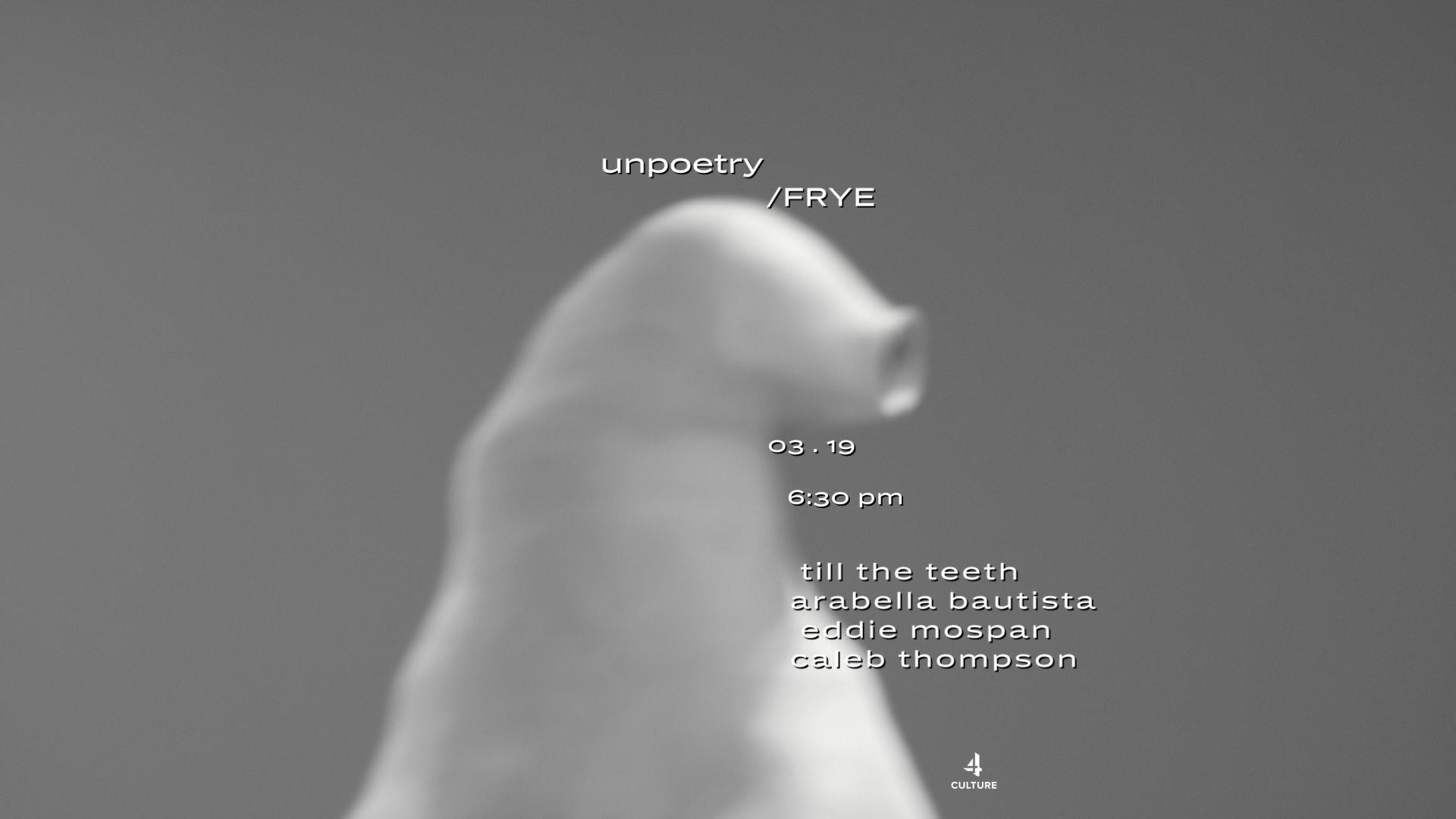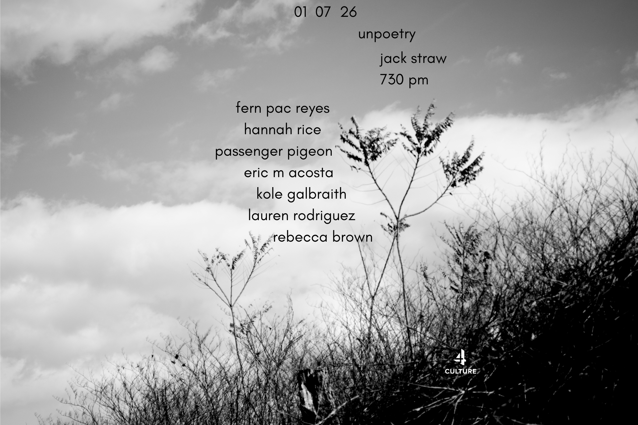 performance series supported, in part, by a grant from View fullsize View fullsize View fullsize newsletter / events cal Monthly unpoetry announcements and a Seattle-area events calendar. Email Address Sign Up Thank you!
